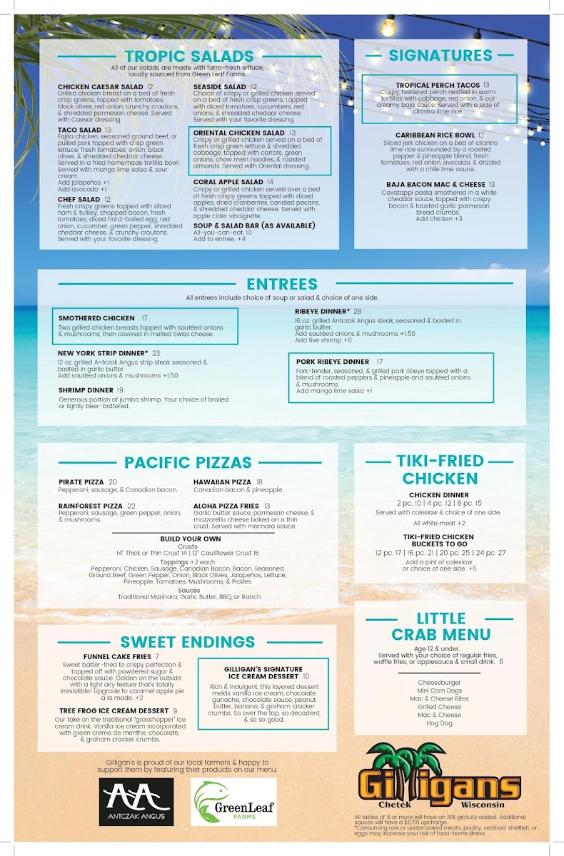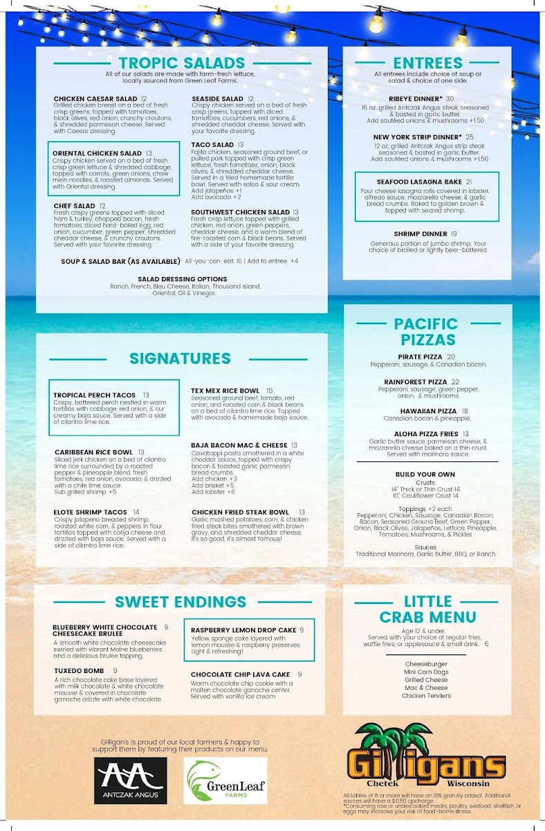 Gilligans in Chetek- bar, restaurant & lodging Menu (2025 Update)